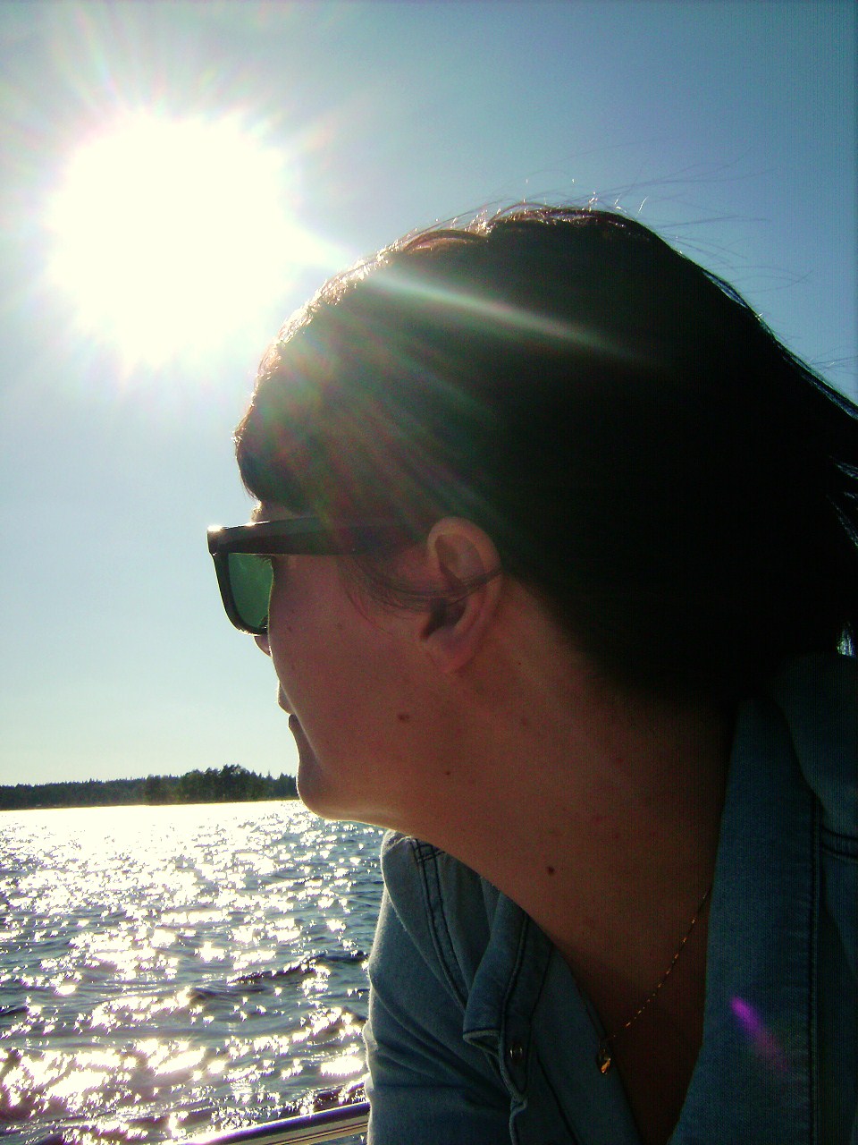 Han skaffade båten förra sommaren och jag åkte runt runt och såg honom åka wakeboard efter den där båten. Så många varv att jag blev alldeles sjösjuk.